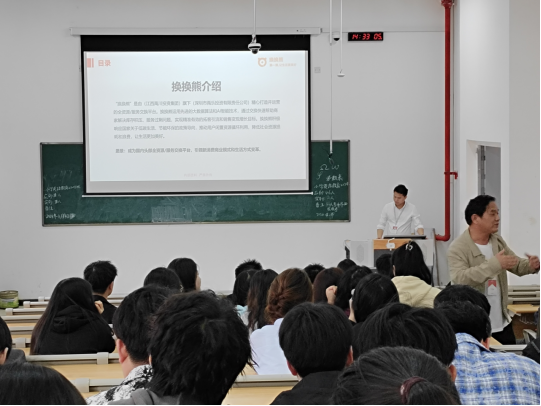 换换熊公司的负责人在现场详细介绍了企业的基本情况、招聘岗位以及员工福利待遇等内容。他强调,换换熊公司重视每一位员工的成长与发展每个员工都能在换换熊找到属于自己的舞台,对于广大毕业生提供充分的就业机会。宣讲结束后,负责人热情的邀请在场毕业生去企业实地考察,大家也纷纷举手,踊跃参与。