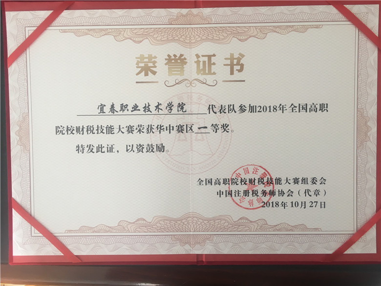 全国职业院校税务华中赛区一等奖