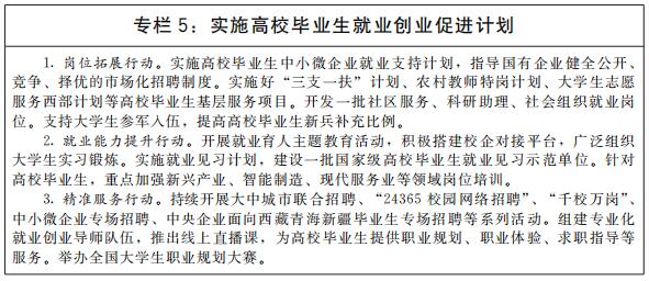 拓宽高校毕业生市场化社会化就业渠道。结合国家重大战略布局、现代产业体系建设、中小企业创新发展,创造更多有利于发挥高校毕业生专长和智力优势的知识技术型就业岗位。健全激励保障机制,畅通成长发展通道,引导高校毕业生到中西部、东北、艰苦边远地区和城乡基层就业。围绕乡村振兴战略,服务乡村建设行动和基层治理,扩大基层教育、医疗卫生、社区服务、农业技术等领域就业空间。为有意愿、有能力的高校毕业生创新创业提供资金、场地和技术等多层次支持。