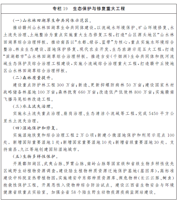 江西省国民经济和社会发展第十四个五年规划和二〇三五年远景目标纲要