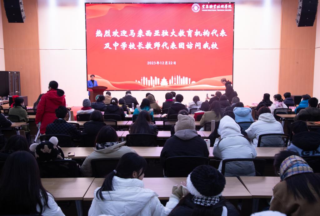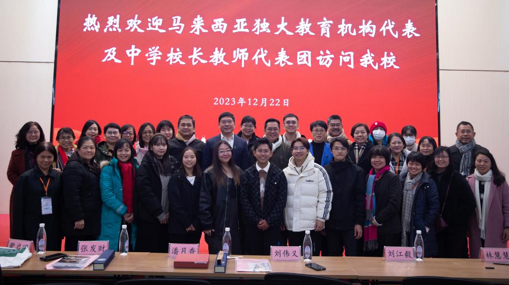 欢迎仪式由校党委书记任军主持,副校长刘江毅致欢迎辞,相关部门负责人、教师代表及学生代表参加欢迎会。任军提到,今天正值中华民族的二十四节气之一——冬至,这是一个热闹且充满祥和的日子,外宾们与我们欢聚一堂,相信我们的友谊将会更加深厚,快乐也将倍增。刘江毅向各位来宾表示最热烈的欢迎,简述了双方合作的成效,并表示:在未来的日子里,我们与马来西亚之间的友好往来和紧密合作将继续为两国友谊之花增添新的色彩!