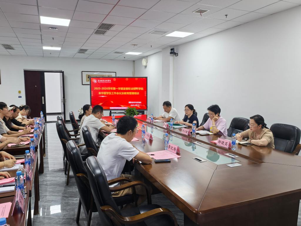 本站讯(国际合作与交流处王若婷)9月11日下午,学校在天工楼四楼第一会议室召开2025-2026学年第一学期来华留学生工作会议及教育管理培训。校党委委员、副校长刘江毅,保卫处处长周军华,师范学院党总支书记邹晓英,学工处、国际合作与交流处、来华留学生所在二级学院相关人员及来华留学生班主任、辅导员参会。会议由国际合作与交流处处长刘海云主持。