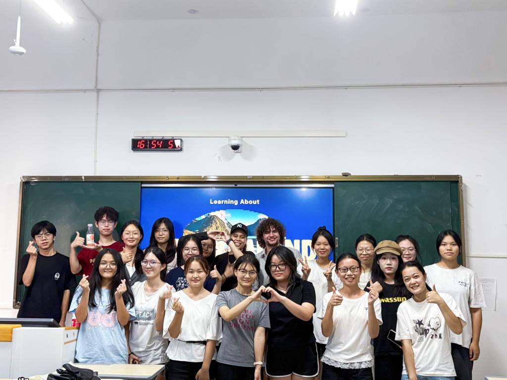 本站讯(国际合作与交流处王若婷)10月10日下午,由新西兰志愿者Axel与Zee组织的新西兰文化交流活动在正心楼B118举行,吸引众多学生参与。同学们在知识讲解与趣味互动中领略新西兰文化,收获独特体验。