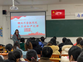 本站讯(护理学院 周玥 张蔺珊)为进一步加强党风廉政建设,提升教师廉洁意识。1229日下午,在南校区四教楼411,护理学院院长周俊杰以锲而不舍抓作风,永不放松严纪律为题为全院教职工上了一堂生动的廉洁教育专题党课