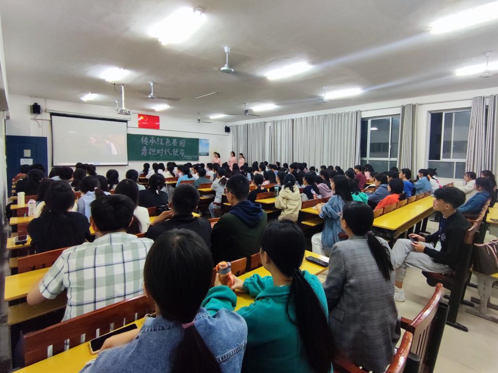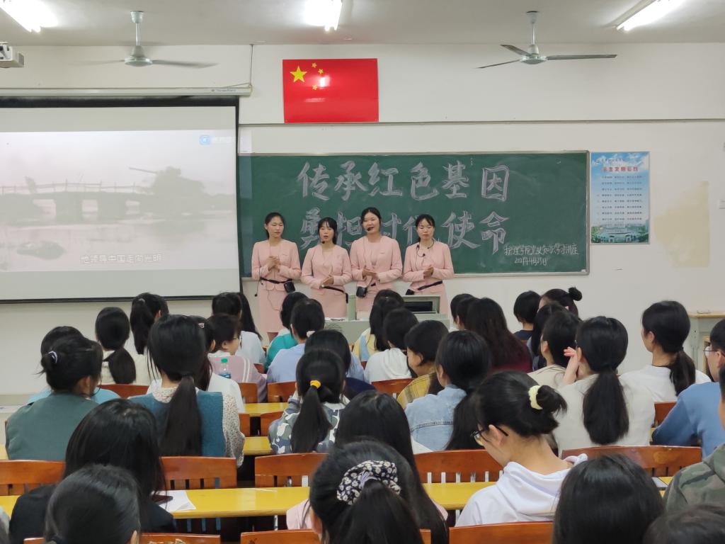 金牌讲解班潘妮娜、李紫琴、欧阳珍、周景荣四位同学面向护理学院百余名学生讲述党史故事。