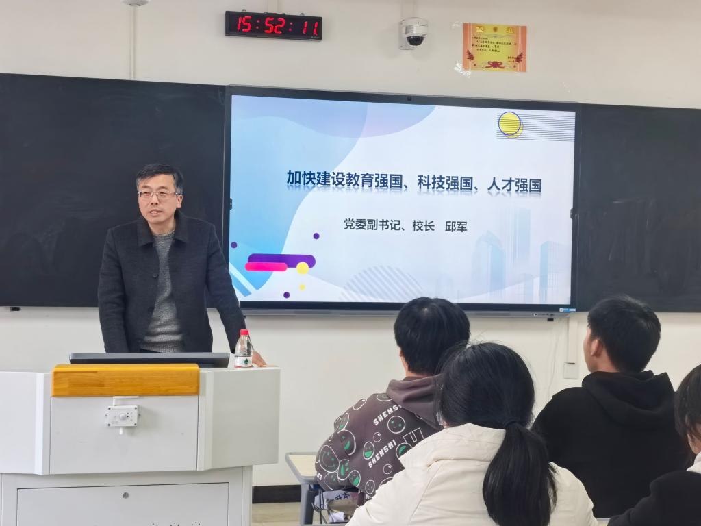 为进一步加强大学生思想政治教育,落实立德树人根本任务,1月4日,党委副书记、校长邱军为护理23301班的同学们带来一堂主题为《加快建设教育强国、科技强国、人才强国》的形势与政策课。