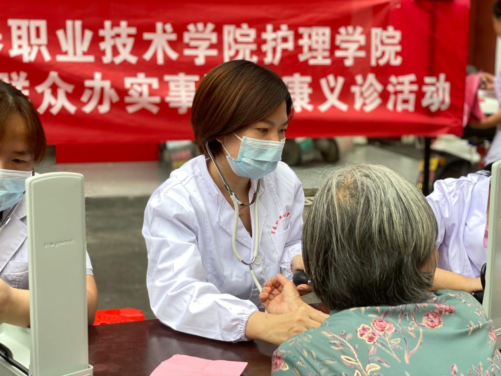 活动现场,护理学院教师志愿者们给大家提供了免费量血压的志愿服务,医务志愿者在给每个人量完血压后,都会根据个人情况,给居民一些指导性建议。同时,还给居民发放健康宣传单,认真耐心地解答老年人关心的高血压、心血管病等疾病预防、康复指导方面的问题,并给大家讲解一些保健知识,特别是一些身体不适的老年人,志愿者们详细地给他们讲解保养方法和注意事项,希望大家能够多关注自己的身体,定期体检。