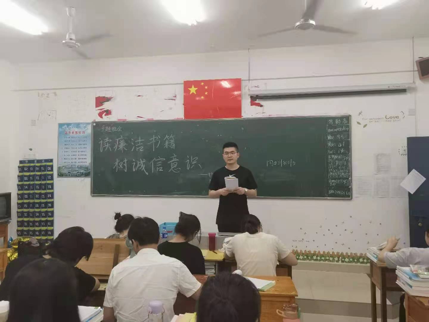 班会伊始,班主任带领同学们阅读《扣好人生每一粒扣子》《苦难辉煌》等廉洁书籍,讲述敬廉崇洁的故事,引导同学树立廉洁意识,养成诚实守信、勤俭节约的品质。随后,同学们紧紧围绕廉洁品质和青年担当进行了读书交流,畅谈所思所想、所感所悟,促进了读书成果的转化,营造了浓厚的学习氛围。