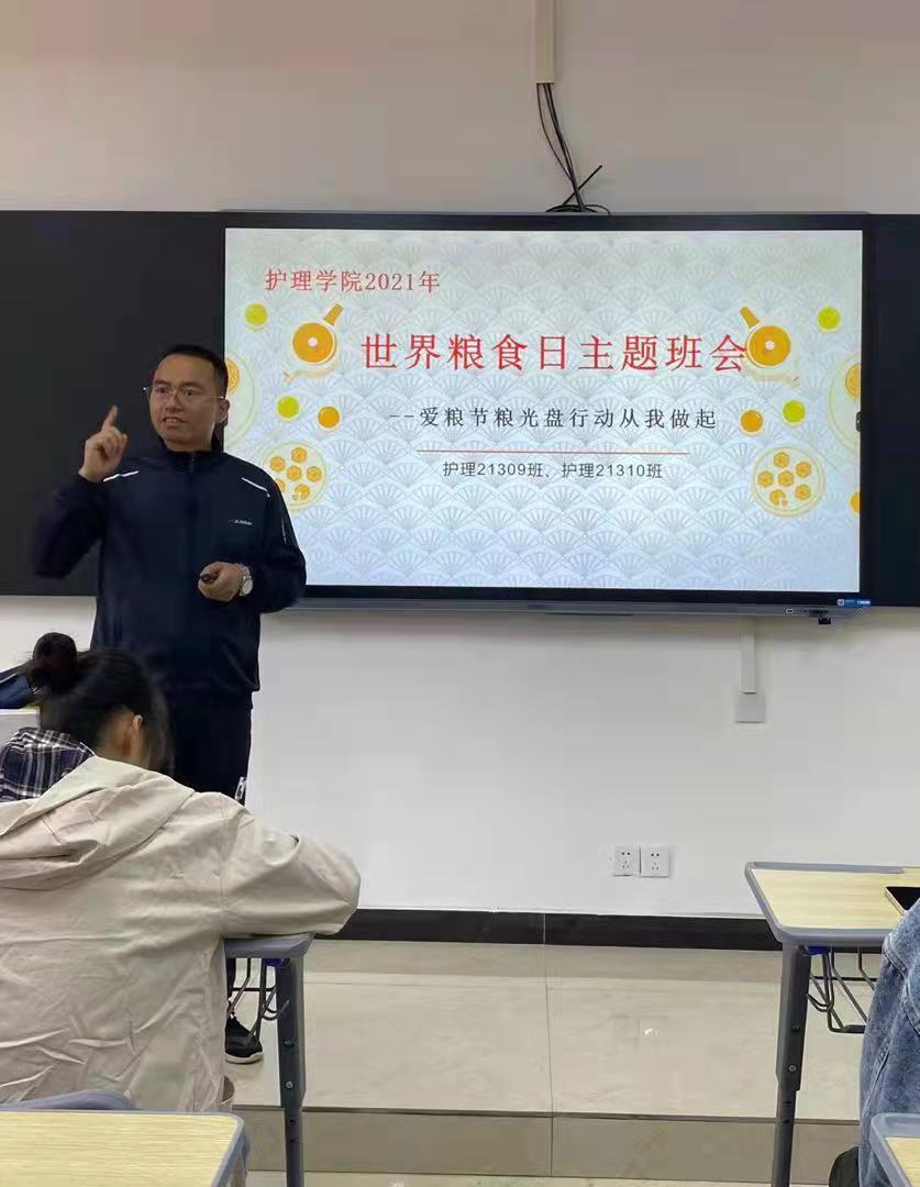 主题班会前,护理学院向全院学生发出了“爱粮节粮,光盘行动”的倡议,要求同学们光盘行动从自身做起,养成节约粮食的良好习惯。主题班会上,各班班主任组织同学们观看“光盘行动,从我做起”的相关视频资料,为同学们阐述了节约粮食、制止浪费的重要性。之后,在班主任的带领下,同学们开展了“爱粮节粮,光盘行动从我做起”大讨论,在大讨论环节中,同学们围绕“爱粮节粮,光盘行动从我做起”这一主题,以一问一答的形式分享了自己的观点和举措。最后,各班班主任号召广大青年大学生要全面爱粮、节粮、科学用粮、珍惜粮食,做文明就餐的先行者,做节约粮食的传播者,做光盘行动的实践者。