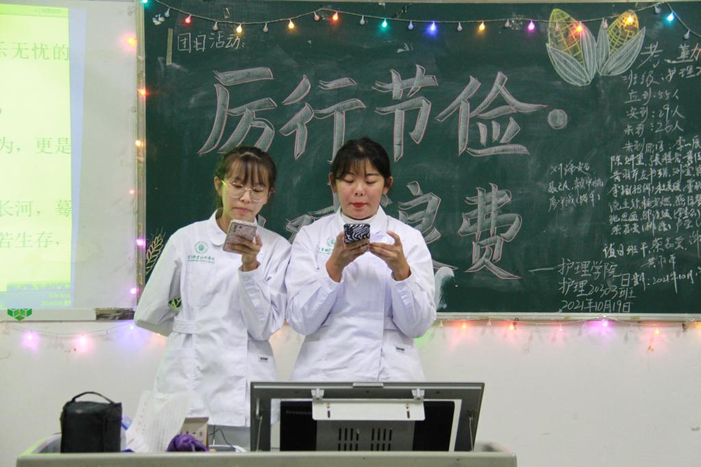 积极引导大学生参与“光盘行动”培养勤俭节约的文明风尚。护理学院于10月19日在各班开展了“厉行节俭·反对浪费”团日活动。