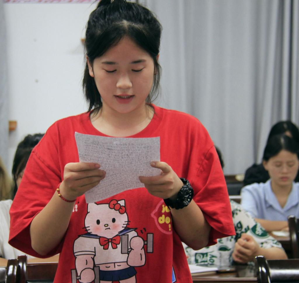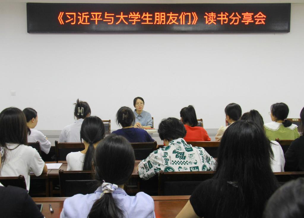 会上,各位学生代表就近期阅读感悟进行了交流分享。 庞利花同学谈道:“身为新时代的大学生,我们更应担起时代之责,挑起时代之担。” 官静芸同学谈道:“读完这本书,我就像一艘漂泊的船,遇到了指引方向的灯塔。 ”最后,彭琪玉也分享了自己的阅读收获,她认为《习近平与大学生朋友们》是广大青年学生学习立志修德、提高本领才干的生动教材,希望同学们要认真阅读,从中汲取力量,增长才干,争当成为有担当、有责任的青年。