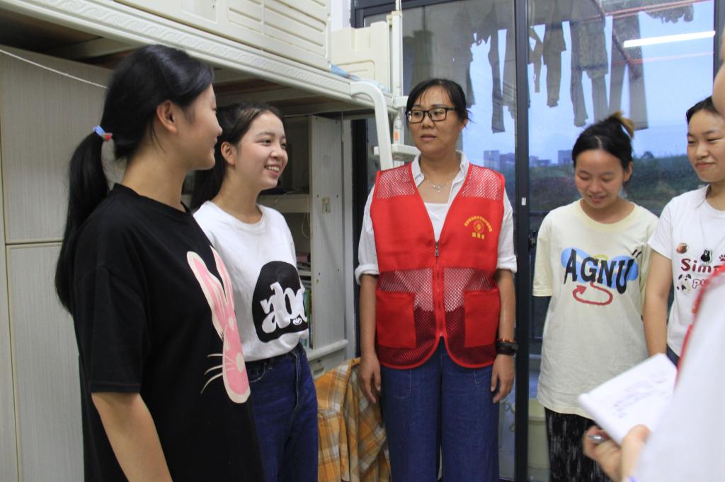 志愿者们主动与同学沟通交流,详细倾听同学们的心声,认真查看环境卫生、安全隐患等情况,耐心解答学生提出的问题,详细记录学生提出的建议和要求。曲晴提醒同学们要增强安全防范意识,并鼓励大家努力学习,加强体育锻炼,养成良好生活习惯,保持积极乐观的心态,真正成为肩上有担当、心中有阳光、脚下有力量的优秀大学生。同学们纷纷表示,与老师、志愿者面对面交流倍感温暖,将以最好的精神面貌投入到新学期的学习生活。