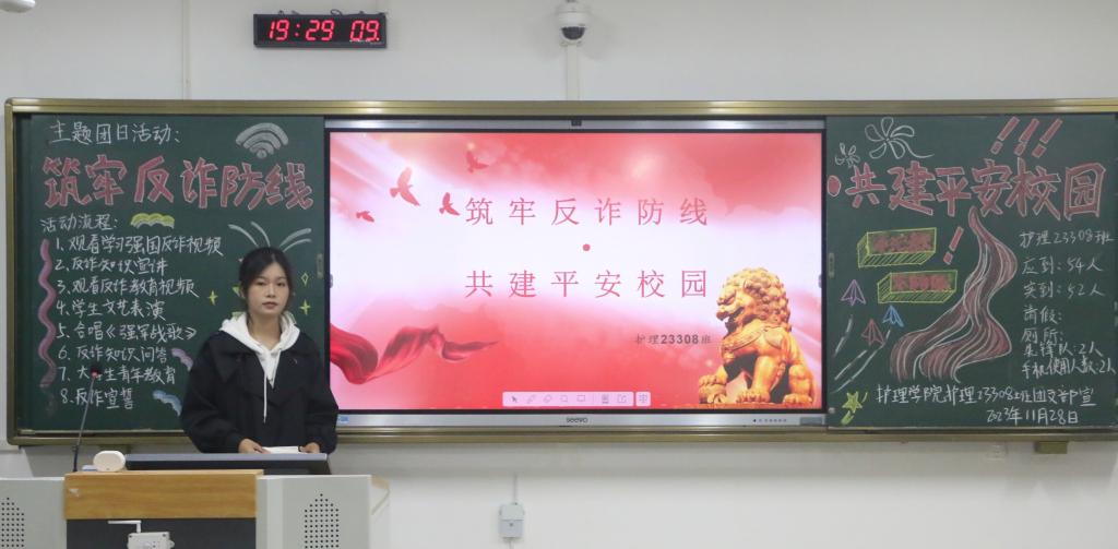 为深入学习贯彻习近平总书记关于打击治理电信网络诈骗犯罪工作的重要指示精神,提升师生反诈意识及应对能力,1128护理学院各班开展“筑牢反诈防线,共建平安校园”主题团日活动护理23302班为全校主题团日活动示范班级。