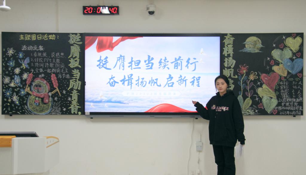 教育引导广大团员青年继承光荣传统、肩负强国使命,用青春汗水书写新时代新征程奋斗篇章1219日,护理学院各班开展“挺膺担当励青春,奋楫扬帆启新程”主题团日活动。