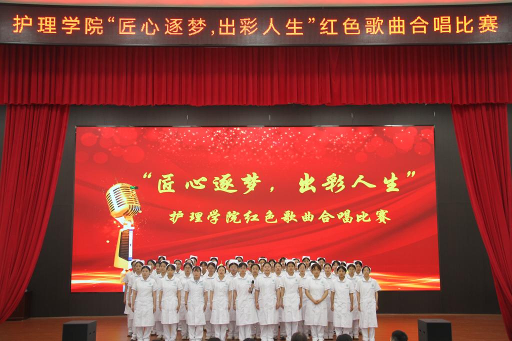 为弘扬爱国主义精神,传承红色基因,5月23日,护理学院在仁济楼礼堂举办“匠心逐梦,出彩人生”红色歌曲合唱比赛。