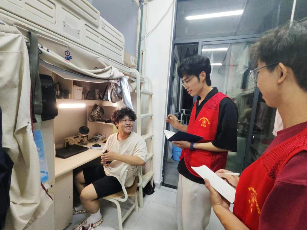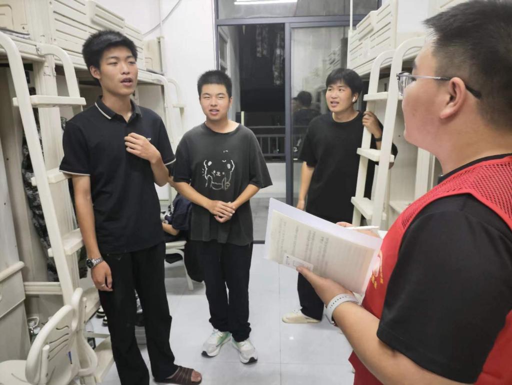 党团组织成员带着对新同学的关心和期望,走进新生宿舍。在交流中,他们详细询问了新同学的生活适应情况,包括饮食、作息、学习环境等各个方面。通过面对面的沟通,党团组织成员及时了解到新生们的需求和遇到的困难,并给予针对性的建议和帮助;在了解学生生活情况的基础上,党团组织还特别安排了理论宣讲环节。党团组织成员向新生们详细解读了党的二十届三中全会精神,通过深入浅出的讲解,新生们对党的二十届三中全会精神有了更加深刻的理解。
