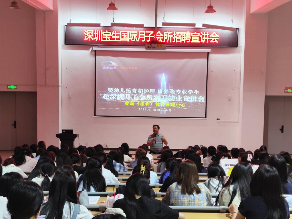 为进一步提升学生就业意识与职业规划能力,搭建校企人才对接桥梁,5月11日,护理学院特邀深圳宝生国际月子会所总经理刘宗福在和济楼阶梯教室开展实习就业招聘宣讲会。