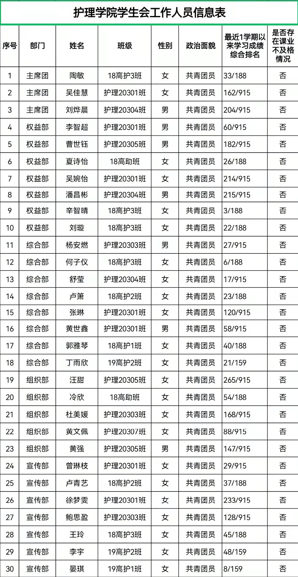根据《团章》《中华全国学生联合会章程》《英国上市公司365第十八次学生代表大会名额分配细则》等相关文件要求,经班级团支部推荐、护理学院组织选举和公示,如下学生将参加英国上市公司365护理学院第九次团员代表大会和第十八次学生代表大会: