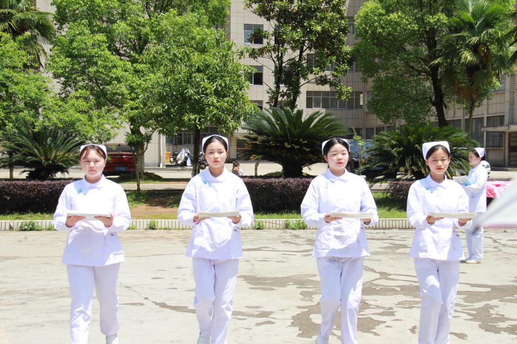 护理学院于南校区天使广场开展“传红色精神,展护理风采”护理礼仪比赛。护理礼仪老师李悠梦,学工