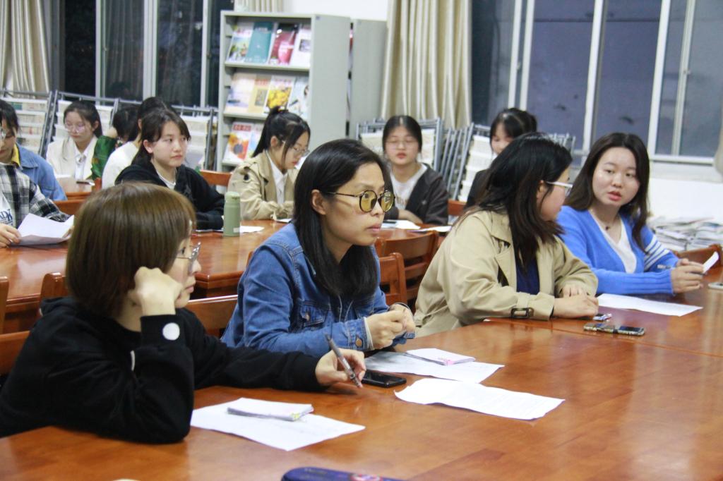 育学院周霞、吴雯、宋玲三位英语老师及护理学院党总支副书记王玮、辅导员汤琼担任评委,共47位同学