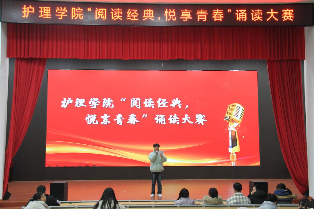 为深入学习贯彻习近平新时代中国特色社会主义思想和党的二十大精神,增进青年学子对中华民族秀传统文化、革命精神、社会主义先进文化的认同和感悟,12月19日,护理学院在仁济楼礼堂举办“阅读经典,悦享青春”诵读大赛。为提高全体学生素质,此次比赛选手由学院随机选取产生。