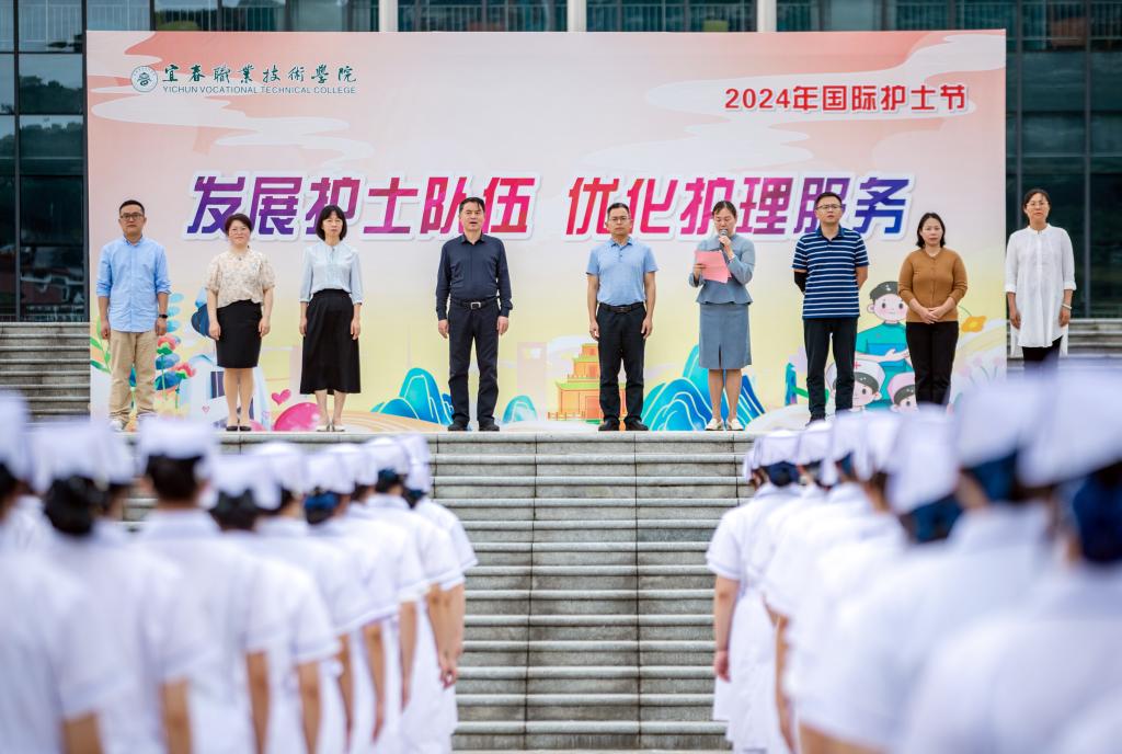 云霞开锦绣,万物启芳华。在第113个“5·12”国际护士节来临之际,5月7日,护理学院在开物广场举办以“发展护士队伍 优化护理服务”为主题的庆祝2024年国际护士节活动。副校长张印华、纪委书记刘平涯、副校长刘叶建,党委委员、统战部部长邓伟蓉,护理学院班子成员和全体师生参加庆祝活动。