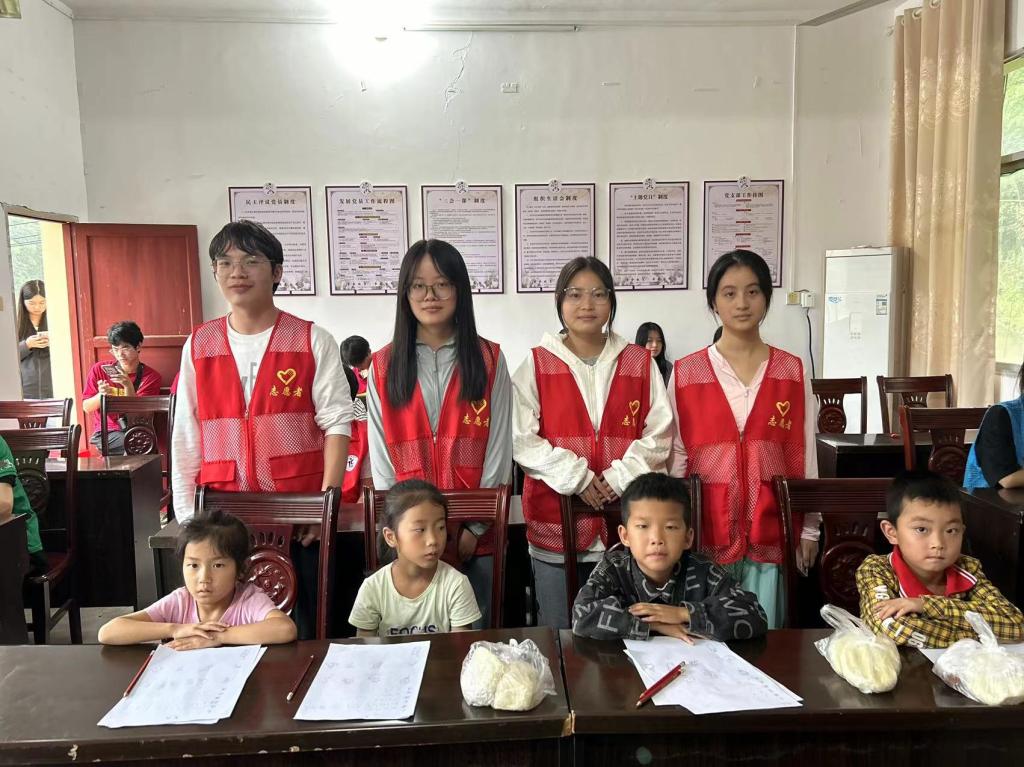 在槽岭村,实践团队面向所有的儿童开展支教活动,从语文到数学,从写字到画画,成员们都耐心辅导。他们带领孩子们一起学做儿童经络六拍操,让他们在轻松愉快的氛围中锻炼体魄,增强体质;结合科普视频,以通俗易懂的讲授方式,向孩子们普及儿童手足口病预防知识,叮嘱孩子们养成健康的生活卫生习惯,保持好的健康状态。团队成员们用自己的专业知识向槽岭村的孩子们传递关爱与温暖,助力他们健康成长。