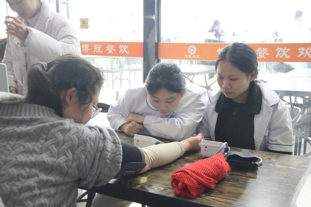 活动当天,志愿者们早早地抵达现场,布置场地。在义诊过程中,他们运用扎实的专业知识,根据测量结果,为师生们详细分析健康状况,并提供科学的指导。面对师生们提出的各种健康问题,志愿者们都耐心地一一解答,内容涉及生活习惯的调整、疾病预防的科普知识等多个方面,特别是针对大学生群体,志愿者们结合他们的生活特点,特别强调合理膳食、规律作息、注意保暖、劳逸结合的重要性,全方位地做好健康防护。志愿者们的关怀与专业解答,让现场的师生们感到无比温暖。