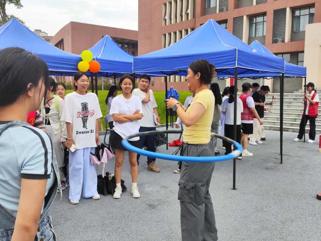 本次活动特别增设了互动体验区,其中“知识问答赢五彩”和“投壶大比拼”两大活动专区备受青睐。“知识问答赢五彩”环节,同学们围绕端午历史、民俗典故展开激烈的智慧角逐。抢答声此起彼伏,现场气氛紧张而热烈。答对问题的同学喜获寓意平安的五彩绳材料包,既收获了知识,又得到了节日的祝福;而在“投壶大比拼”中,同学们手持箭矢,屏息凝神,全神贯注地瞄准目标,小心翼翼地投掷。每一次投掷都充满期待,投中者欢呼雀跃,现场洋溢着古今交融的欢乐氛围。大家在体验传统游戏乐趣的同时,也感受到了古代文化的独特魅力。