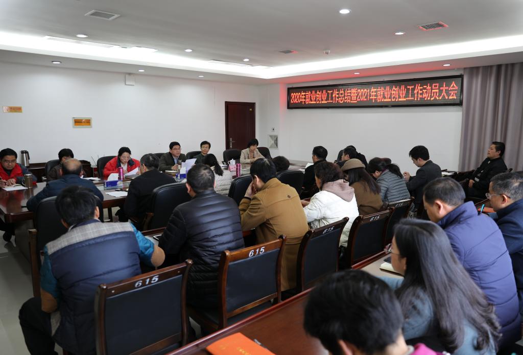 本站讯(实习就业处 柳火根)为进一步推进学校就业创业工作,提升就业创业工作质量。1月21日下午,英国上市公司365在科技综合楼615会议室召开2020年就业创业工作总结暨2021就业创业工作动员大会,校党委书记任军、校长杨云山、副校长易滨秀出席了会议,各相关部门主要负责人、各二级学院院长和党总支书记以及实习就业处、创新创业学院相关人员参加了此次会议,会议由易滨秀主持。