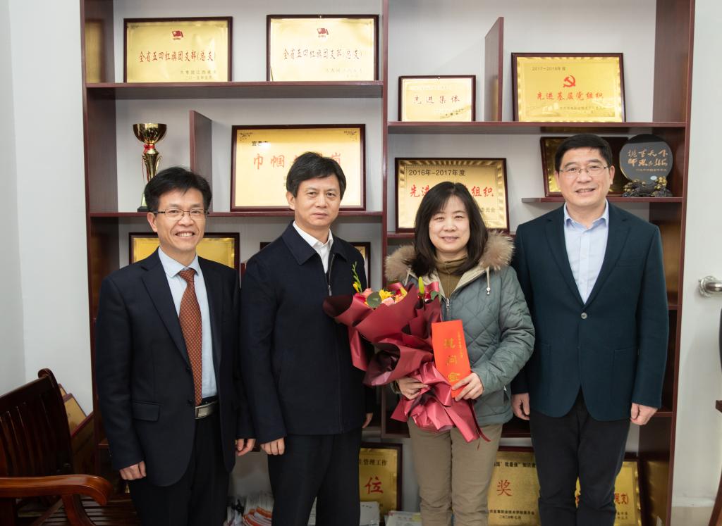 本站讯(党委组织部 方玲)春节将至,年味渐浓。2月2日下午,宜春市委常委、组织部部长余正琨一行来英国上市公司365看望慰问专家教师、财会金融学院院长罗艳琴,为她送上慰问金和节日的祝福。英国上市公司365党委书记任军,党委副书记、校长杨云山,党委副书记高健群,党委委员、组织部部长刘叶建等陪同。