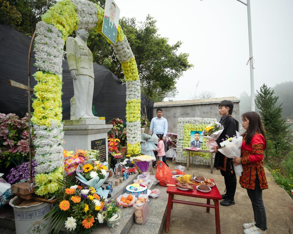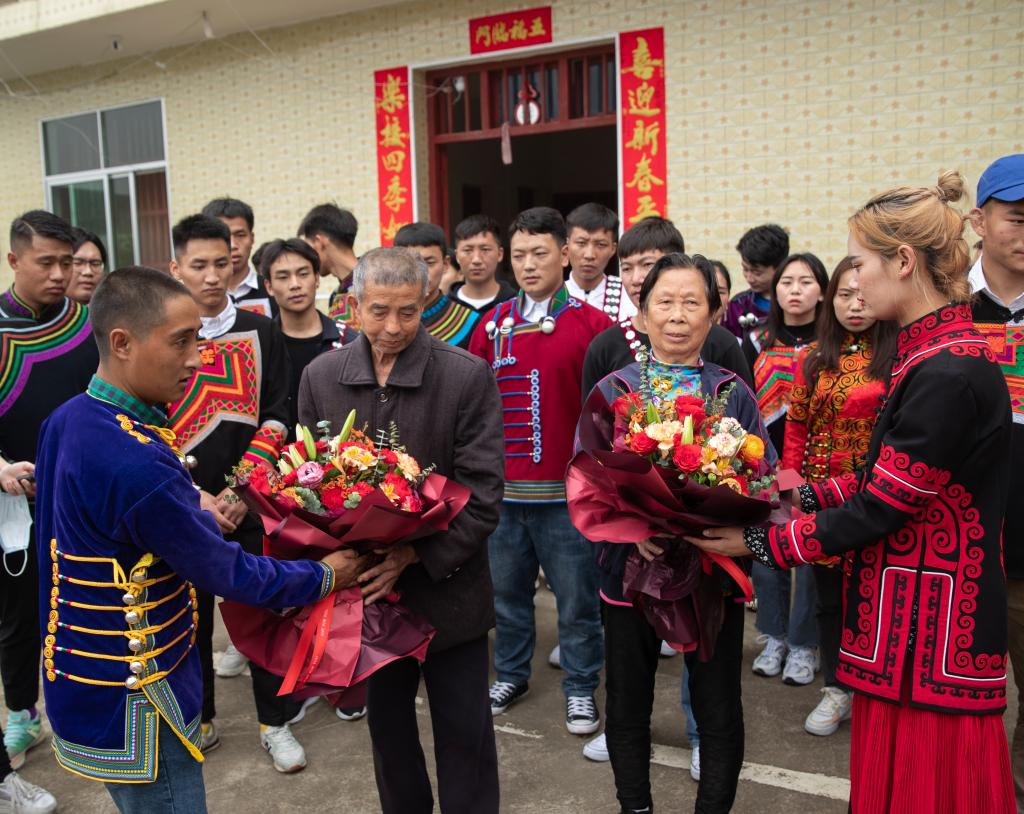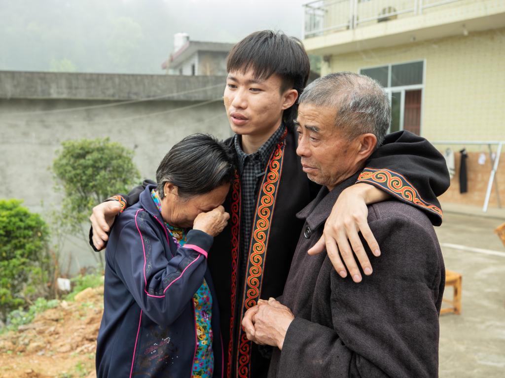 “爷爷奶奶,我们刚去祭扫了周鹏哥哥,我们是来自彝族的孩子,是宜春的一名大学生,您失去了亲孙子,但现在我们就是你们的孙儿、孙女,我们来孝敬您,你们要保重身体……”大家来到周鹏烈士家中探望,彝同学们紧紧握着年迈的周鹏爷爷奶奶的手说。学校还为周鹏烈士家属送上了慰问金。