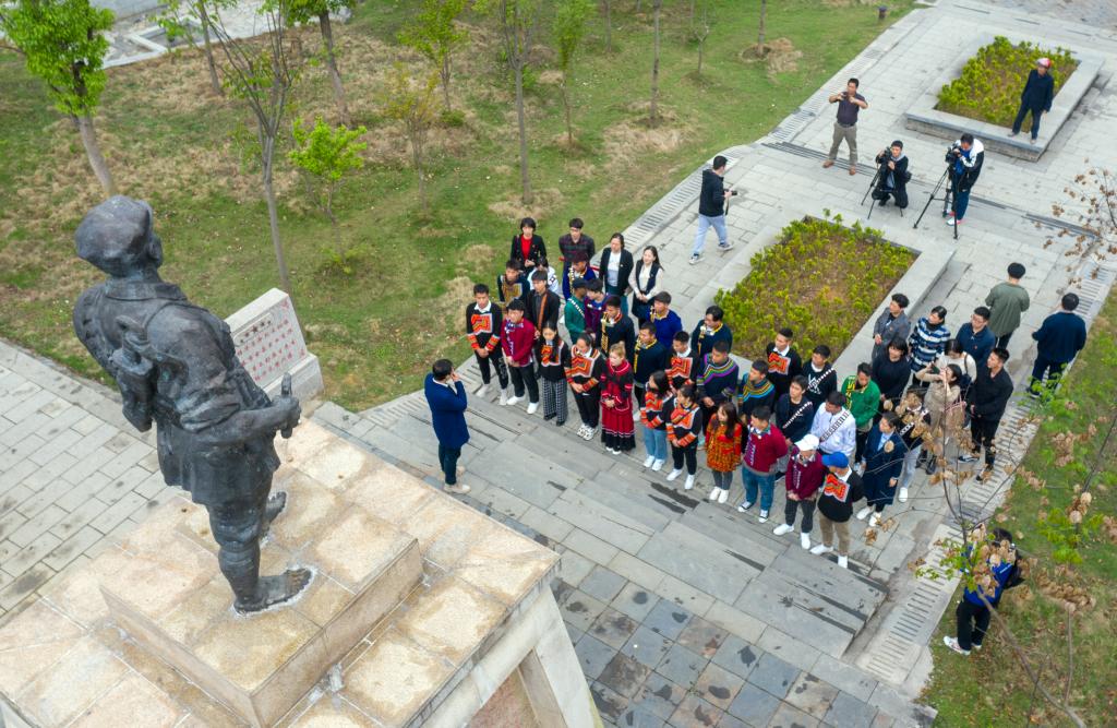 师生们来到水江镇中心的梓华广场,马克思主义学院党员教师张莉彬为大家讲述了“飞夺泸定桥”的党史故事,特别讲到“飞夺泸定桥”中的勇士刘梓华就是水江人,可歌可泣的革命英雄事迹感染着每一位师生。