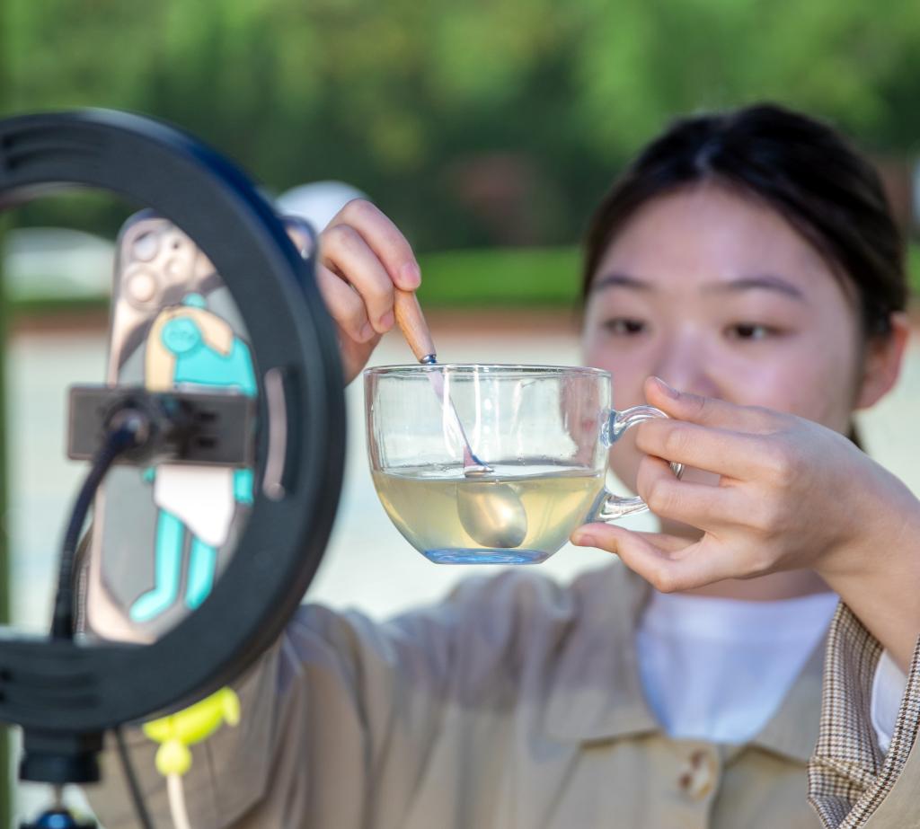 “我宣布,‘五·四’接力大直播活动正式开始!”校党委副书记、校长杨云山话音刚落,各团队纷纷上线抖音,向大家讲解自己负责的农产品,直播带货活动如火如荼地进行着。