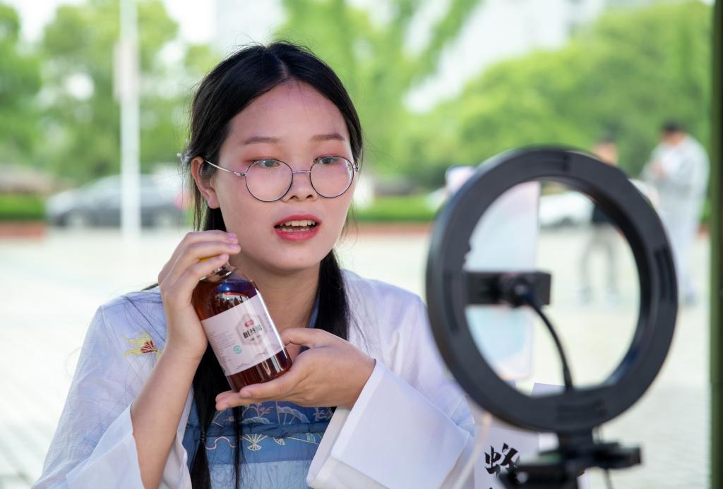 本次活动直播间总人气量达39700人次,售出必选品蜂蜜71单,自选品蛋挞、蛋糕等381单,成交额约7000余元,其中“黄岗味道”树参蜜、百花蜜受热捧。(摄影 党委宣传部 欧阳富萍)