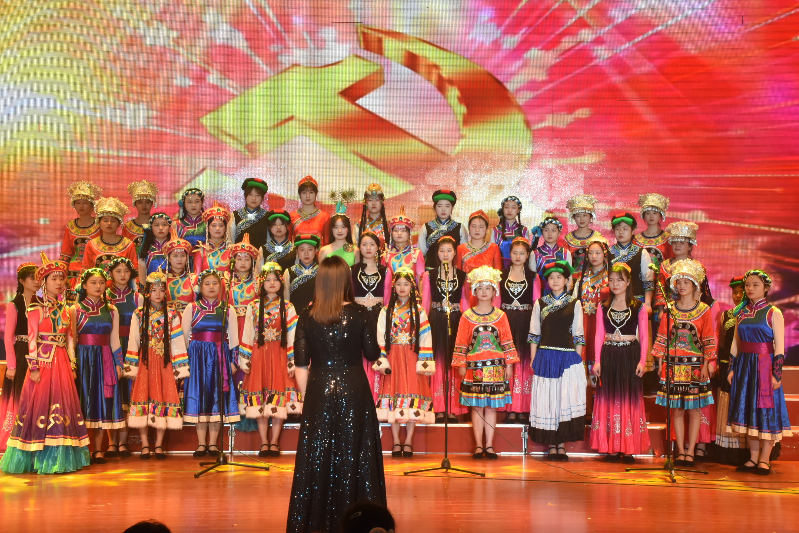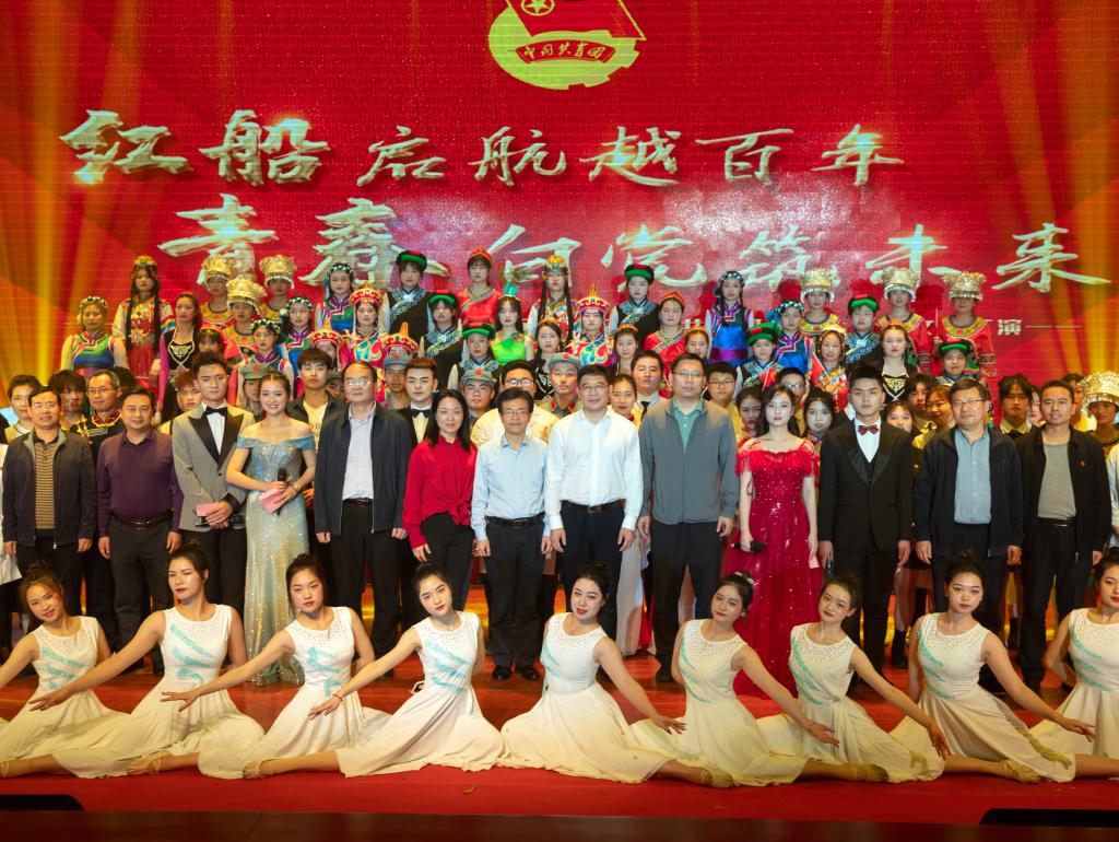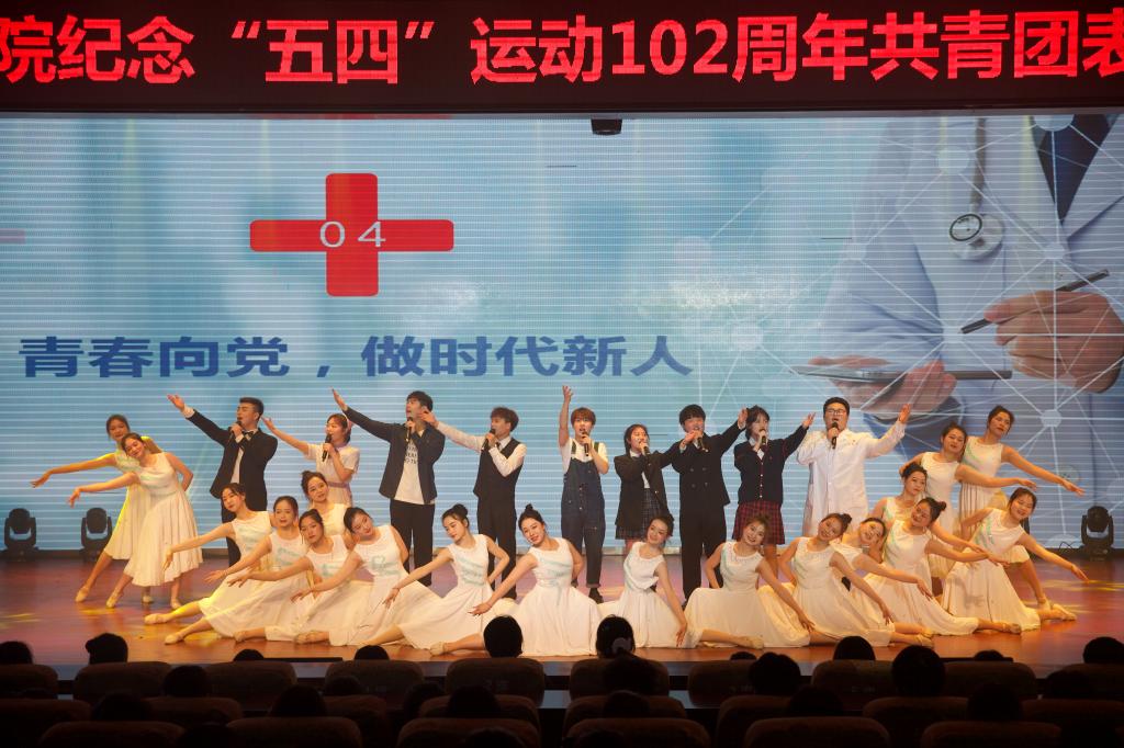 纪念“五四”运动102周年文艺汇演正式开始,开场舞《奔跑的青春》率先点燃全场氛围,少女们用青春炫丽的舞姿、阳光灿烂的笑容向大家展示了活力四射、元气满满的青年一代。大合唱《四渡赤水出奇兵》将大家的思绪带回那战火弥漫的年代,展现了红军战士英勇无畏、不屈不挠的英雄气概。“阿洛……阿洛……”一声声迫切的呼喊牵动着现场观众的心弦,情景剧《我要找到你》讲述了一名彝族学生阿洛依子走失、师生们自发参与营救并成功将阿洛寻回的感人故事。伴随着轻快的民族乐律,藏族舞蹈《天域》的表演者们素手婉转流连,裙裾飘飞旋转,灵动飘逸的舞蹈展示了各族人民团结奋斗的事迹。朗诵《永远的太阳》铿锵激昂、热血澎湃,为大家展示了永远绽放光芒的中国共产党及同学们对党百年艰苦奋斗的赞扬与感激。一条条跃动的红色长扇演绎了红色神韵,舞蹈《红色摇篮》描绘了当代热血青年致敬革命先辈、传承红色经典的心路历程。合唱《强国一代有我在》以动情的歌声唱出了青年学子对新时代的信心与期望,勉励青年与时代同步伐、与祖国同命运。情景剧《我和我的家乡》讲述了新时代大学生直播带货、齐心助力乡村振兴迈向新发展格局的先进事迹。舞蹈《碇步桥水清悠悠》表现了在战火纷飞的年代,家属们等待革命战士凯旋的心情。大合唱《唱支山歌给党听》婉转动人,表演者们身着民族服饰,用嘹亮的歌声诠释心中对党的无限热爱和深切祝福。快闪《没有共产党就没有新中国》将现场气氛推向了高潮,全场观众起立挥舞手中的红色国旗、党旗、团旗,高声齐唱,文艺汇演至此落下帷幕。