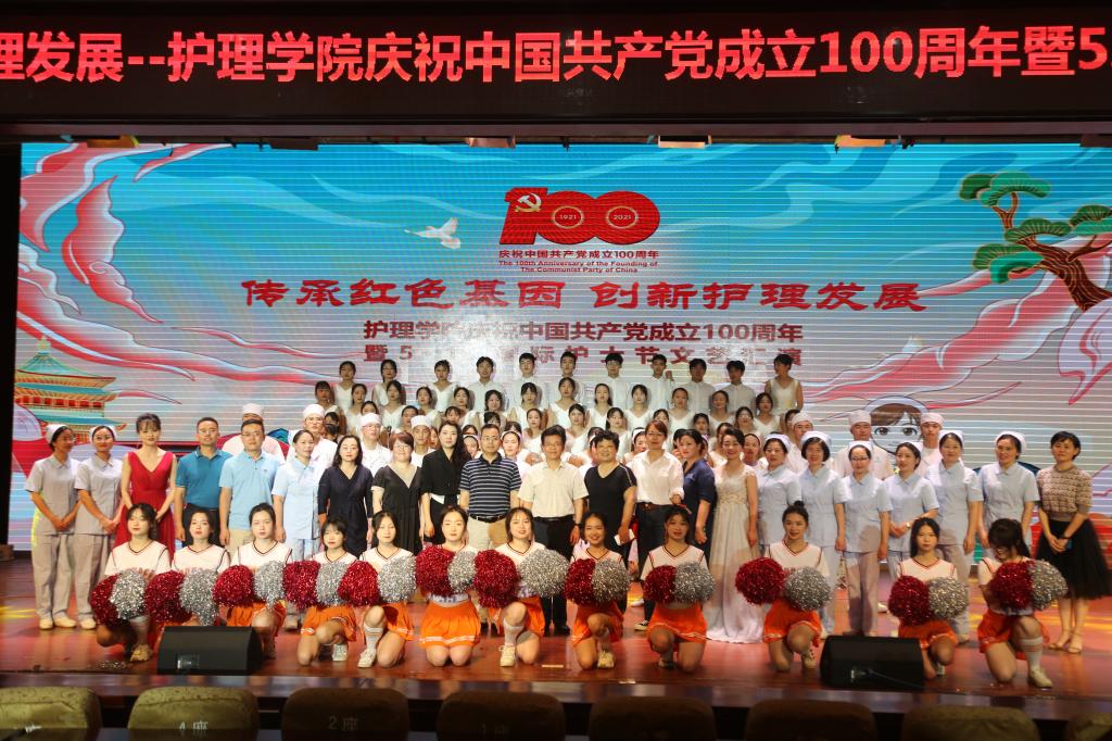 前期护理学院开展了党史知识竞赛、“心中的歌献给党”合唱比赛、最美护生评比、护理礼仪比赛,在晚会现场为获奖集体和个人颁奖。晚会在《没有共产党就没有新中国》激情高昂的歌声中落下帷幕。
