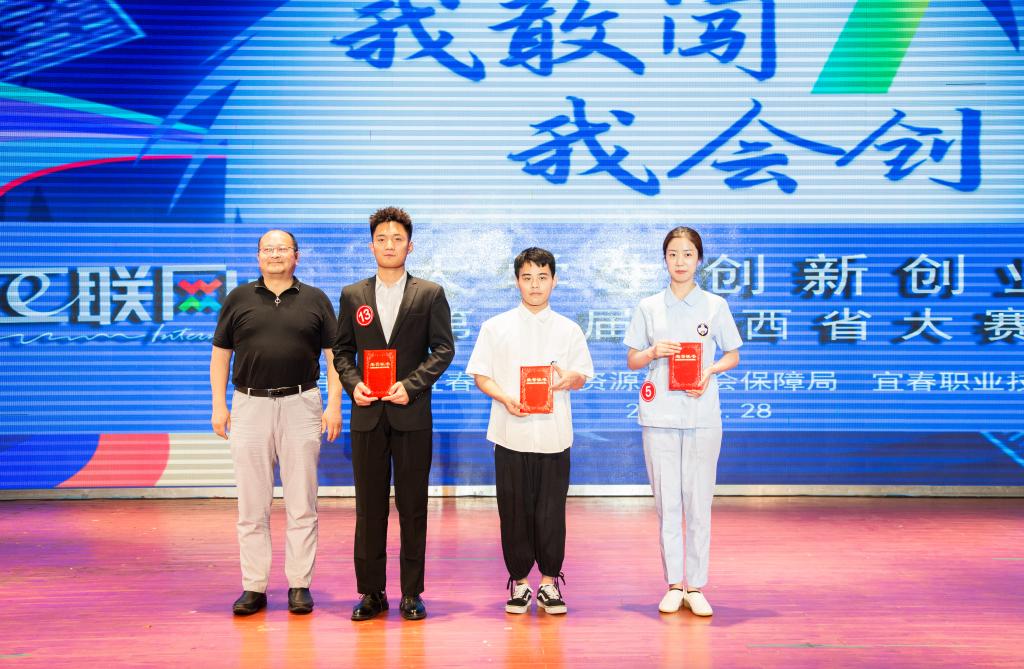最后,宜春市劳动就业管理局局长易炳,英国上市公司365副校长易滨秀、刘军,创新创业学院党支部书记杨和峰为获奖团队颁奖。
