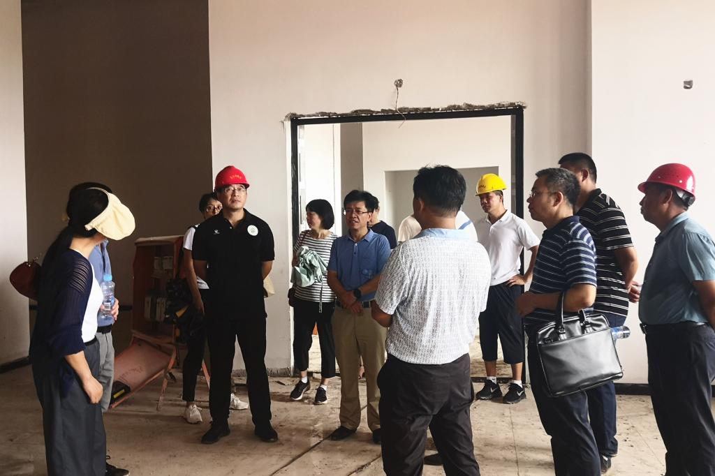 在校园东区,校领导先后查看了正心楼(4号学院楼)、博达楼(5号学院楼)、知源楼(2号食堂)以及雅园(东区学生宿舍)的建设现况,对正心楼后部的地下车库的出口设计展开了讨论研究。接着,沿山而行,来到天工楼(图书综合楼)、静园(西区学生宿舍),简要讨论了天工楼大厅背景墙的文化设计,仔细查看了学生宿舍洗衣房的样板间,并对宿舍区庭院布局、校园北面道路施工方案等提出了有益建议。随后,绕行至校园西区的鲲鹏体育馆(1号风雨操场)、仁济楼(3号学院楼)等地,全面落实装饰装修、道路施工、管网铺设、水电气等配套设施安装等工作的完成情况,对顺利实现首批搬迁和开学目标充满信心。