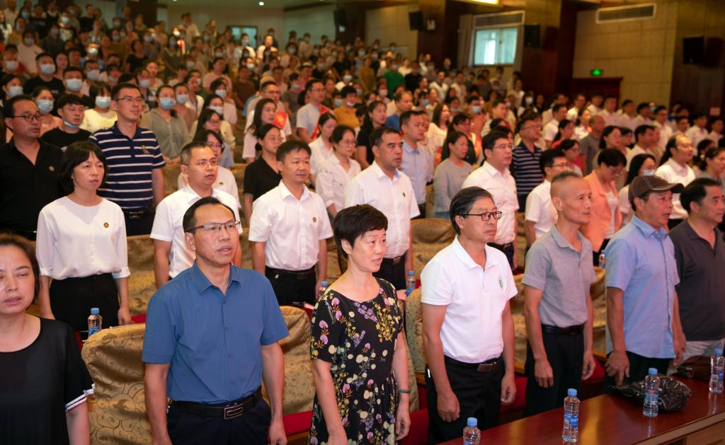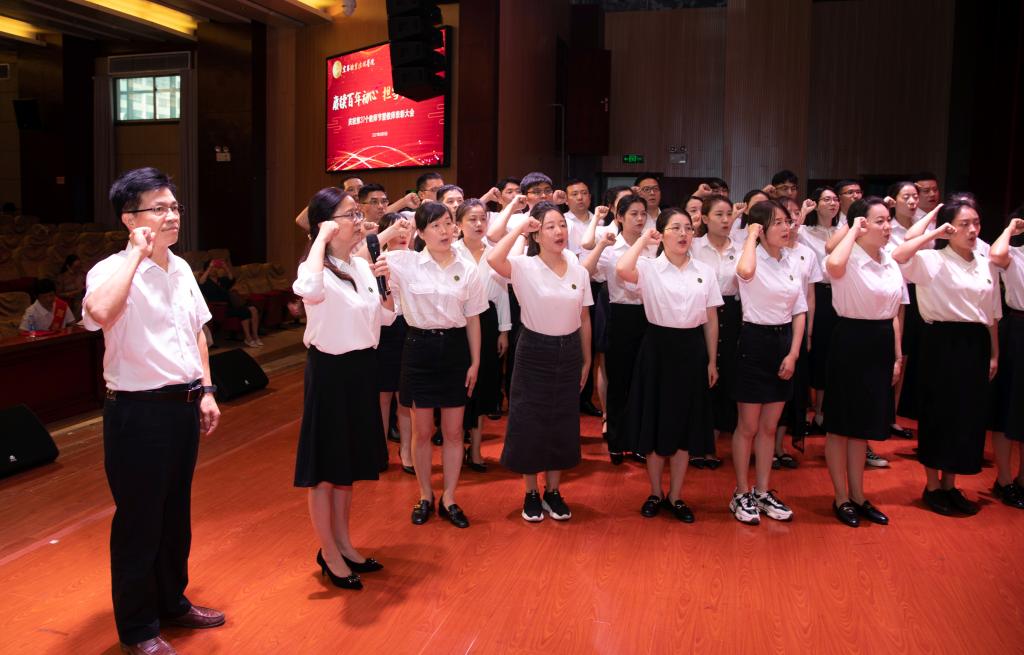 任军回顾了刚刚过去的2020—2021学年,学校在开展党史学习教育、提高办学水平、创新培养人才和推进新校区建设等多方面取得的可喜成绩,这些都得益于各位教师的担当作为;他希望大家要向优秀学习,向先进看齐,赓续“教书育人”初心使命,落实“立德树人”根本任务。为成为一名新时代的合格教师,任书记向全体教师发出号召:一要以家国情怀影响塑造学生,做一名政治过硬、信仰坚定的理想之师;二要以仁爱之心体恤关爱学生,做一名师德高尚、行为世范的品行之师;三要以专业技能培养历练学生,做一名业务精湛、学识渊博的学问之师。