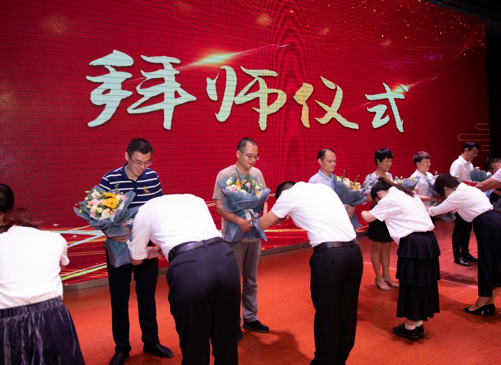 入职宣誓后,是一场别开生面的“拜师”仪式。徒弟们身着正装,向师父们献花并鞠躬作揖行拜师礼。学校为每位新教师精心挑选了一名资深教师负责“传帮带”,指导、帮助即将步入教学岗位的新教师。徒弟们虚心求学、潜心问道,师父们不遗余力、悉心指导,共同绘制出了一幅英国上市公司365教师薪火相传的美好画卷。
