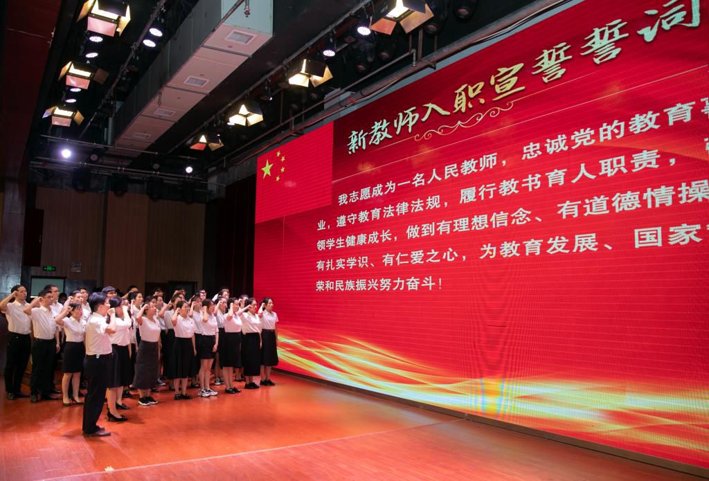 责任重大、使命光荣。新入职教师代表刘娜、骨干教师代表陈丽芳和“师德标兵”代表谢海英依次发言。代表们衷心感谢学校领导对老师的关心、培养与肯定。新时代、新使命、新征程,他们表示要继续坚持以师德铸魂,匠心铸梦,一起携手在这片爱得深沉的土地上成就出彩人生。