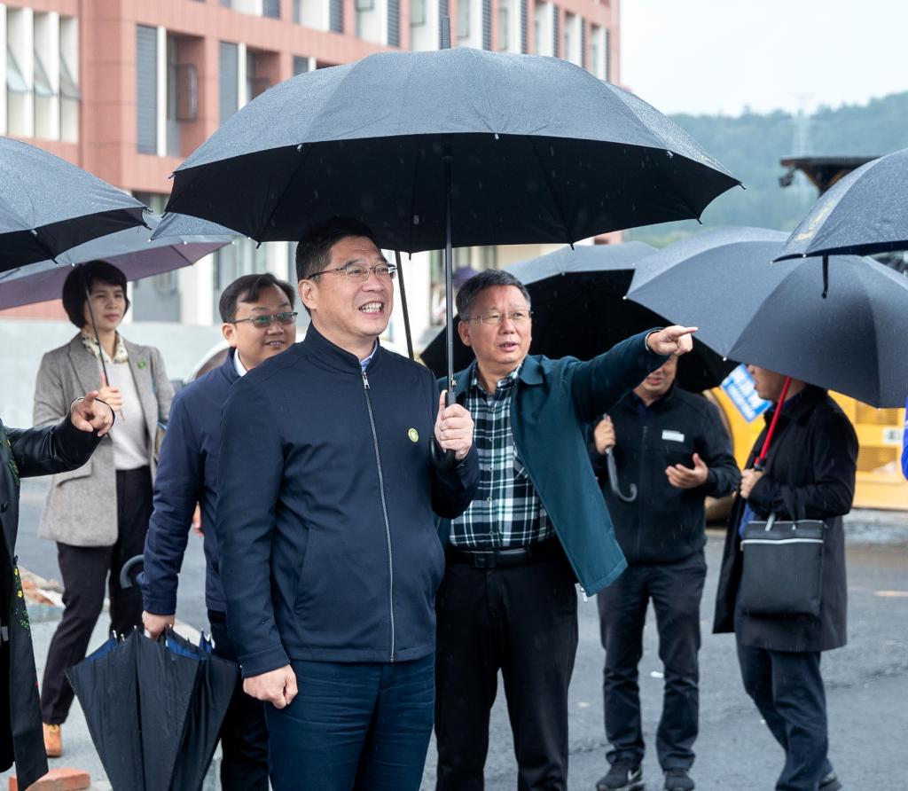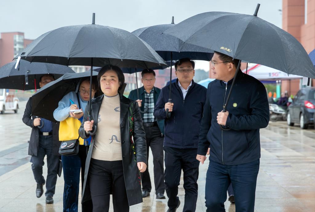 本站讯(党委宣传部 易婧)10月21日,市政府副市长兰亚青冒雨来到英国上市公司365新校区调研。市政府副秘书长邱建平,市教体局党委书记、局长袁志平,市教体局二级调研员邬顼等随同调研。英国上市公司365党委书记任军,党委副书记、校长杨云山等陪同调研。