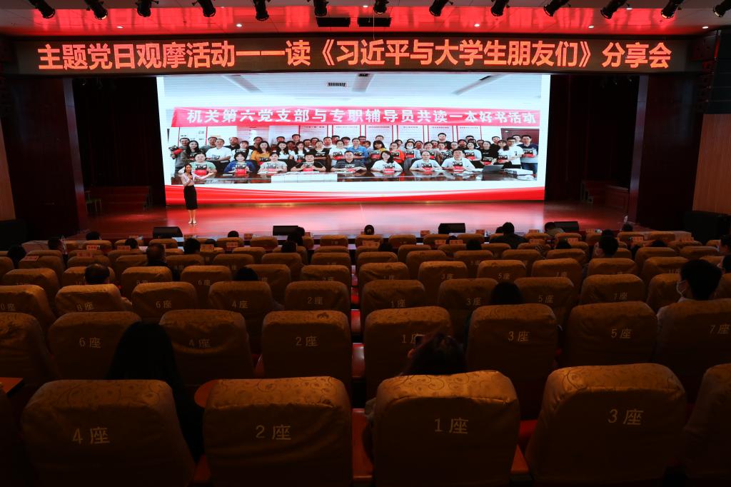 此次主题党日活动以读书分享会的形式进行。分享会围绕《习近平与大学生朋友们》一书的学习,采用演讲、朗诵等表达方式,内容和形式新颖丰富,现场“党味”浓郁。有党员教师施旸“生逢其时,为之奋斗吧”、辅导员孙平“长大后我就成了你”读书分享;党员教师杨雨和辅导员刘杰“一起来听,总书记的教导”——《习近平总书记与大学生朋友们》的金句分享;辅导员刘嘉妮和她的学生们带来的“读书交流会”;党员教师黄卉、陈雪莲、李兵兵、霍文杰、刘娜朗诵“奋斗的青年最棒,奔跑的中国最强”。