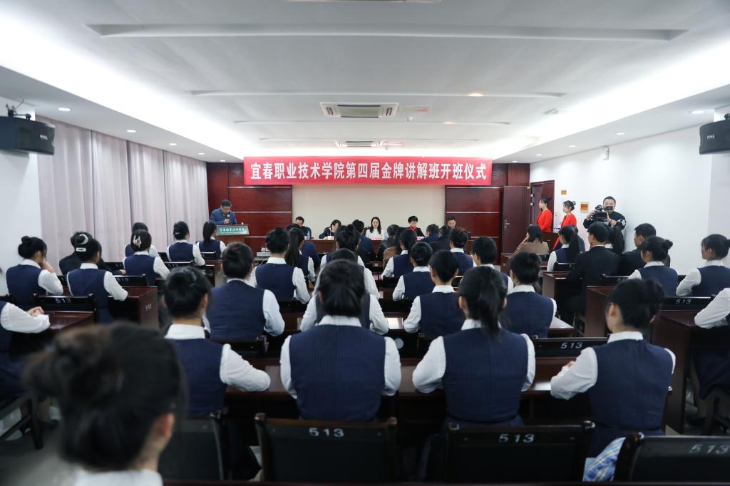 在开班仪式上,电商与旅游学院院长陈洪汇报了第四届金牌讲解班的筹备情况、训练安排及往届金牌讲解班取得的成效,特别强调了本届金牌讲解班将以宜春红色文化、风景名胜、人物特产等为内容,采取线上、线下两种方式进行讲解训练。