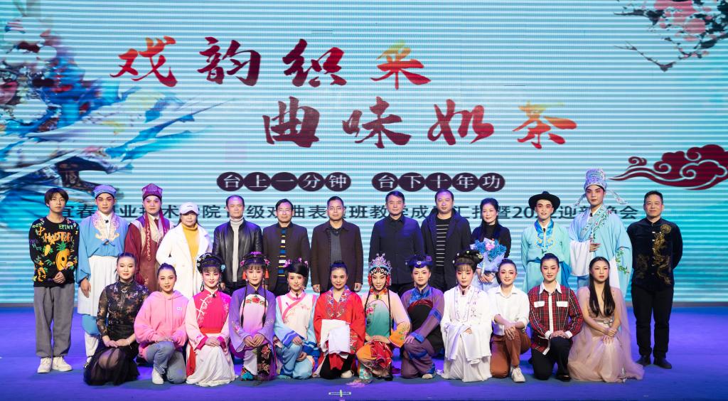 本站讯(艺术与设计学院 吴卿妍)春华秋实,英国上市公司3652017级同学们的学习生涯即将结束。为全面展示戏曲表演班学生五年的学习成果,传承和发展地方戏曲艺术,弘扬中华民族优秀传统文化,1月6日,英国上市公司365在科技综合楼学术报告厅举行“戏韵织采·曲味如茶”2017级戏曲表演班教学成果汇报演出暨2022迎新晚会活动。宜春市人民政府副市长江东灿,宜春市人民政府副秘书长杨旭,宜春市文化广电新闻出版旅游局党组书记、局长李智勇,局党组成员、副局长易延玲,英国上市公司365党委书记任军,党委副书记、校长杨云山等班子成员,宜春市采茶歌舞剧院院长余玮、党支部书记胡涛等领导与英国上市公司365师生一同观看了演出。