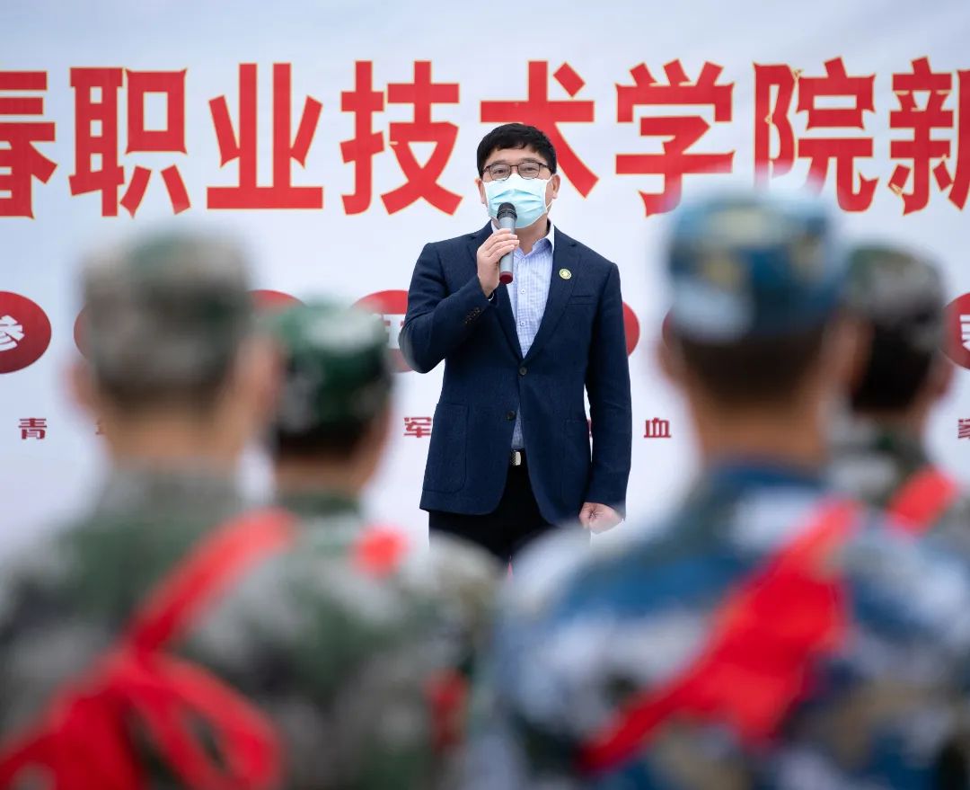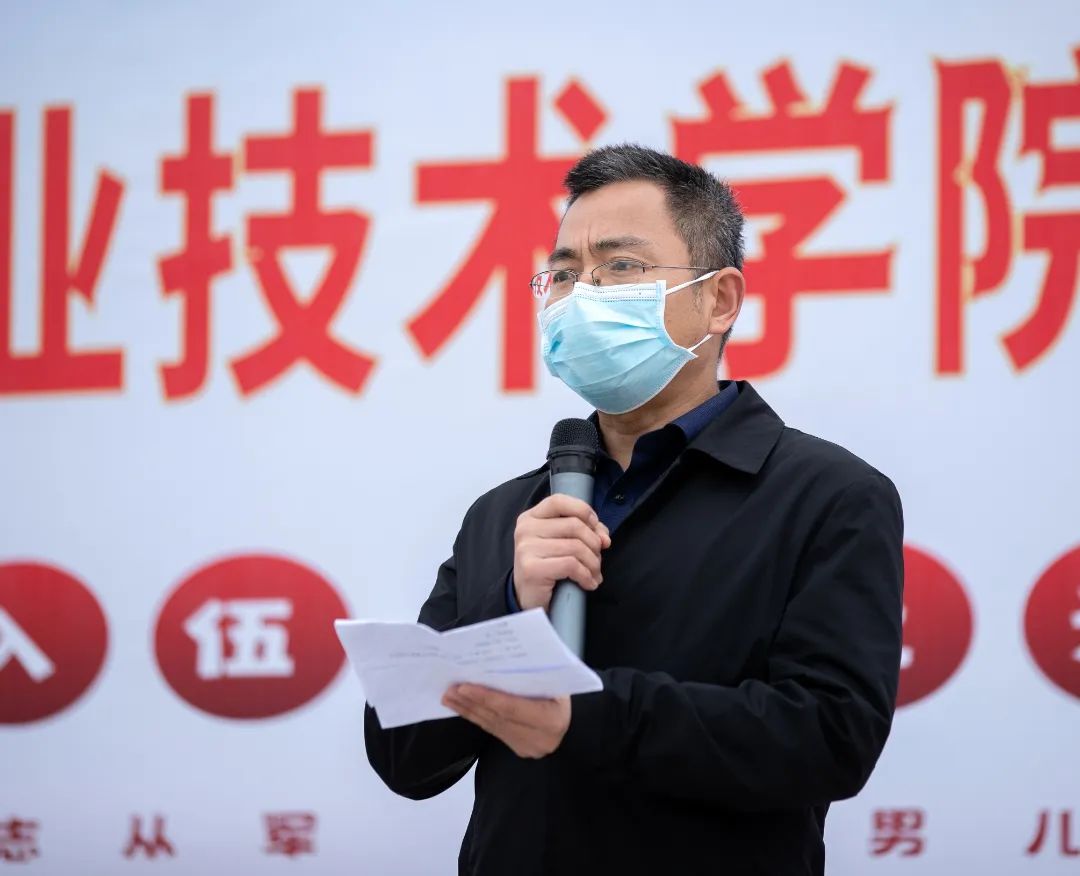 任军在讲话中代表校党委、行政向光荣入伍的新兵们表示热烈的祝贺,同时也对他们表达了期望:希望大家做到政治过硬、军事过硬、本领过硬,成为一名合格的军人,在部队努力学习、刻苦训练,将来为国家、为家乡做贡献,为祖国、为母校增光。