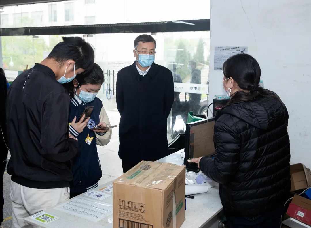 邱军一行还前往老校区附属医院、物流中心和图书馆调研疫情防控工作。他指出,我们要加强快递管理,严格规范执行快递物品收置、消杀等流程,做好校园内的疫情防控工作,筑牢校园安全防线。(摄影 党委宣传部 欧阳富萍)