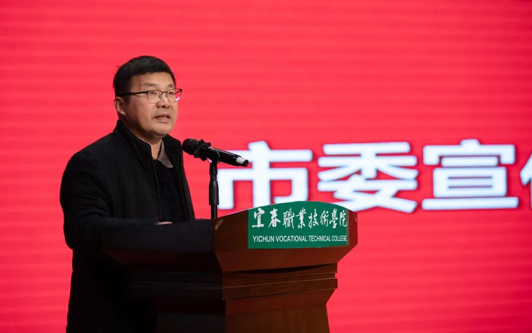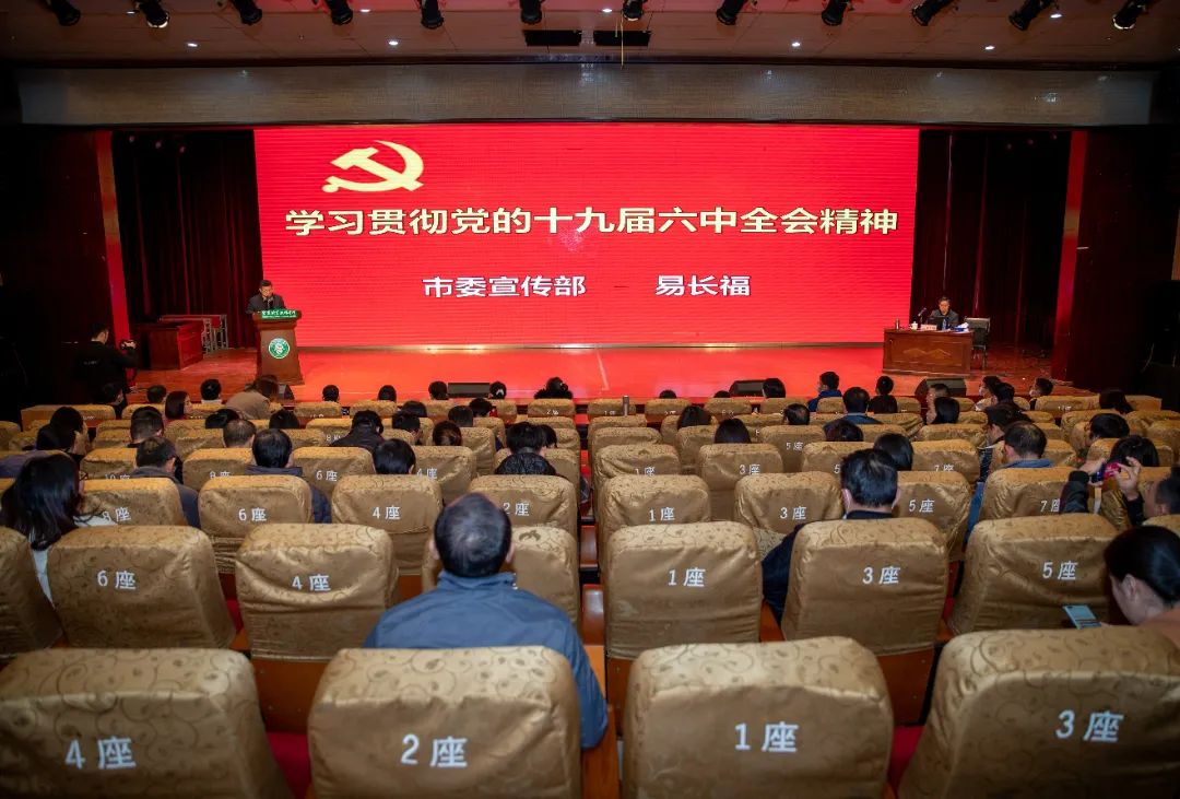本站讯(党委宣传部 易婧)12月7日下午,市委宣讲团成员、市委宣传部二级调研员易长福来到英国上市公司365,在科技综合楼学术报告厅为师生们宣讲党的十九届六中全会精神。在家校领导、中层干部、党员教师与学生代表共计四百余人一同聆听了宣讲。宣讲会由校党委副书记高健群主持。