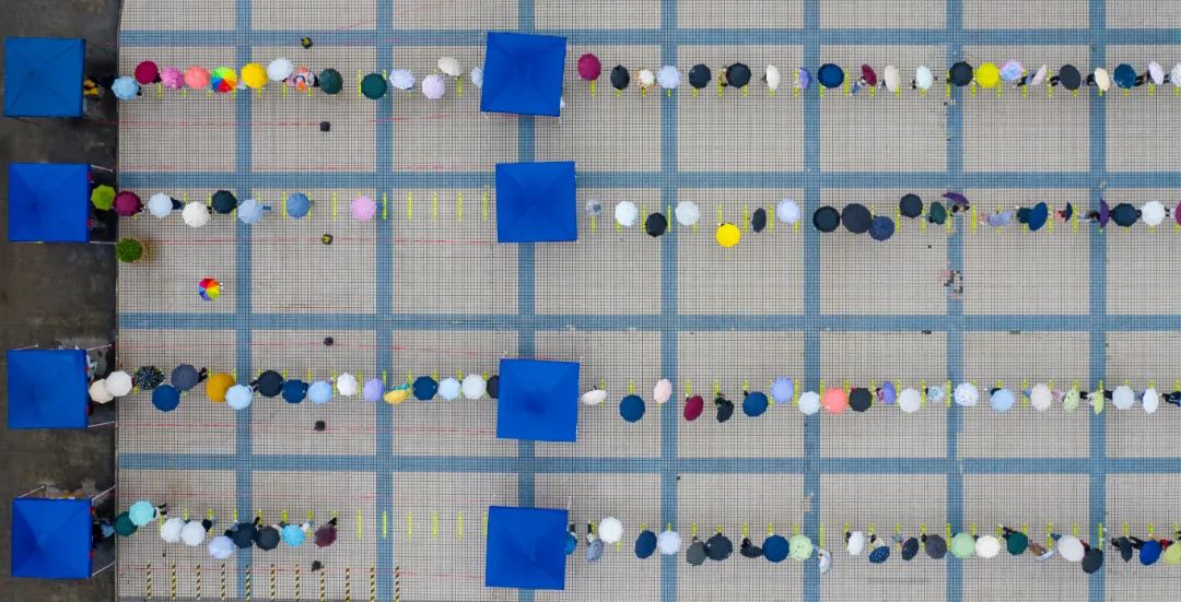 在此次检测工作中,学校快速反应、协同推进。排查组、保障组、安保组设计好路线,设置路障、警戒线,志愿者提前粘贴了900余条“一米线”地贴,方便引导师生有序排队;检测当天,排查组、防控组、安保组等各工作组,学院工作人员,志愿者冒着小雨有条不紊地维护现场秩序;各学院多次开会布置工作,师范学院实行班级网格化管理,护理学院采用“寝室长(寝室)——班干部(班级)——院领导(学院)”三级管理模式,医学院以“班主任线上、班干部线下”双重监督方式等,最大限度地节省学生排队时间,避免人员聚集;对于校内年龄较大、行动不便的老人,骨折受伤的学生和校园临时隔离区的隔离人员,专门安排医护人员上门采样;保障组及时做好检测后消杀工作,大家通力配合,确保了检测工作的安全高效。